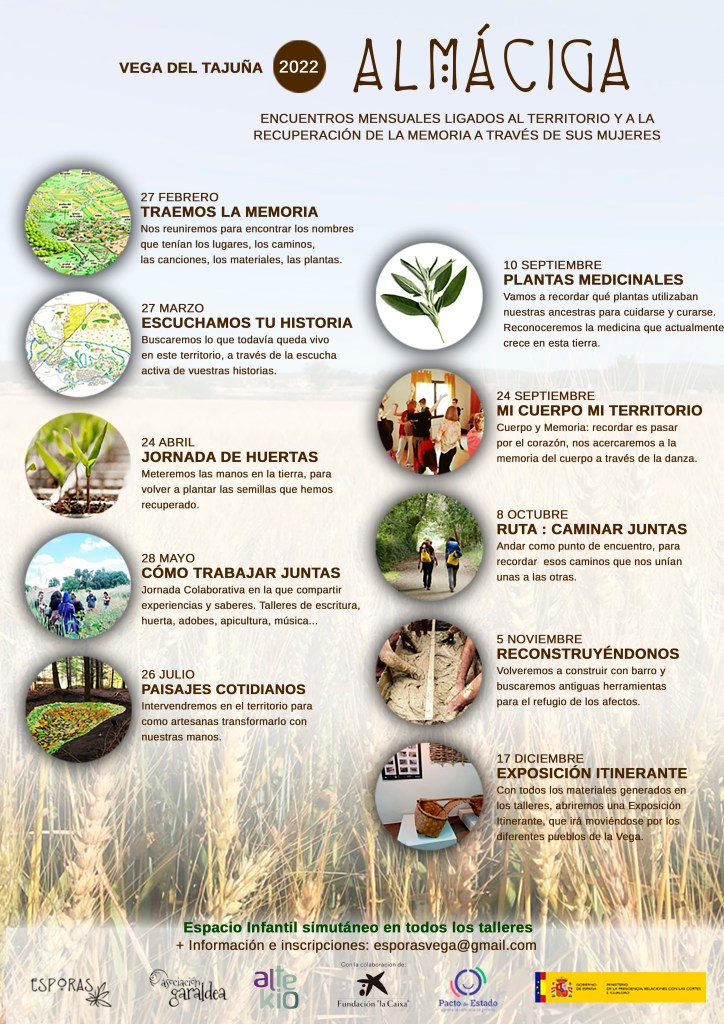 La línea Almáciga se encuentra dentro del marco del Proyecto Esporas, se desarrollará en encuentros mensuales ligados al territorio y a la recuperación de la memoria a través de sus mujeres durante el año 2022