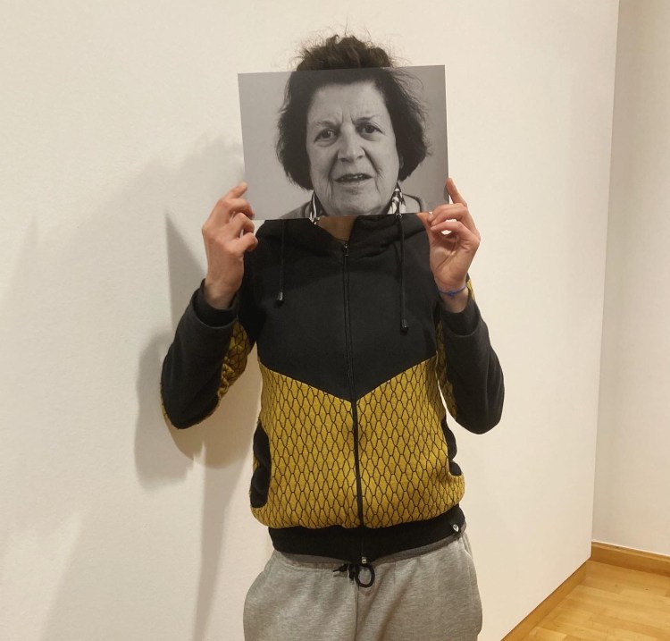 Raquel abrazando a su  abuela, madre